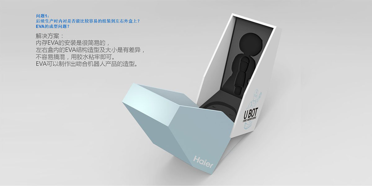 海爾智能機(jī)器人包裝設(shè)計(jì),采用開合式設(shè)計(jì),烘托內(nèi)部產(chǎn)品;用色清新簡(jiǎn)約呼應(yīng)內(nèi)部產(chǎn)品配色。內(nèi)部貼合產(chǎn)品外形的設(shè)計(jì),起到穩(wěn)固產(chǎn)品、增加緩沖的作用。簡(jiǎn)潔醒目的標(biāo)識(shí)信息,將產(chǎn)品信息快速傳遞給消費(fèi)者。