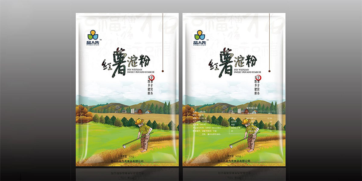 品為先食品整體包裝調(diào)性,緊貼農(nóng)產(chǎn)品產(chǎn)品特性。以農(nóng)耕的實(shí)際環(huán)境轉(zhuǎn)換為矢量插畫,用稚拙的筆觸,勾勒出鄉(xiāng)村風(fēng)光,凸顯農(nóng)作物在自然生長(zhǎng)過程中的優(yōu)良環(huán)境。品牌logo以近似于“品”字形,用以黃、綠、藍(lán)等富有生機(jī)的色彩相襯,烘托品牌調(diào)性。