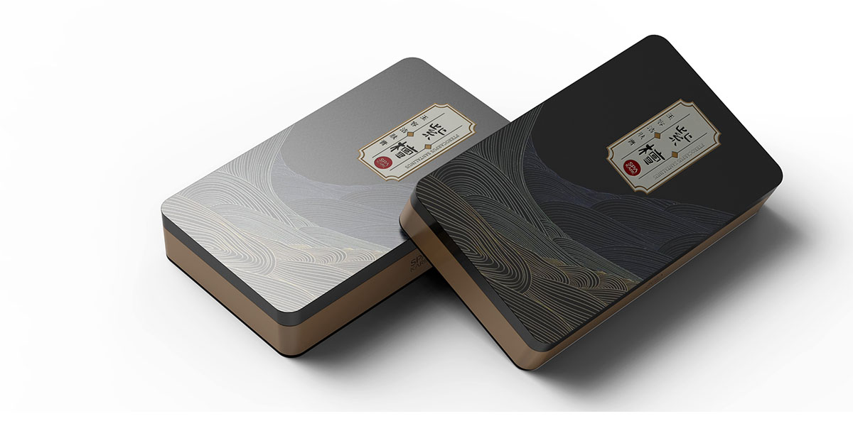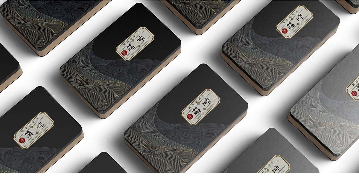 由紫檀本身出發(fā)抽離出時間的符號,用線性的線條與自然山脈的起伏表現(xiàn)之紫檀時間的沉淀。選用中國傳統(tǒng)色進行整體方案規(guī)劃,成熟穩(wěn)重的墨黑色輔以流動的線性裝飾,凸顯了紫檀潔膚膏的天然無添加。