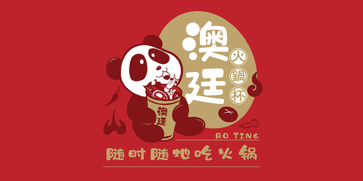 當(dāng)熊貓遇上火鍋,當(dāng)國(guó)寶遇到國(guó)粹,碰撞出源自中國(guó)的寶藏——澳廷火鍋杯。澳廷以熊貓為視覺錘與火鍋相結(jié)合,打造年輕可愛的插畫中國(guó)風(fēng)品牌形象,貼合目標(biāo)消費(fèi)群體喜好,易傳播,辨識(shí)度高;色彩運(yùn)用上采用大篇幅的紅色系應(yīng)用,洋溢滿滿熱情與活潑,符合火鍋調(diào)性。