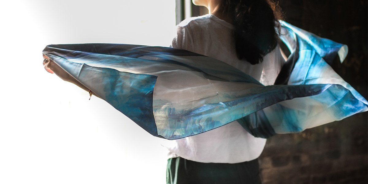 由畫作《海平面》激發(fā)靈感,木馬設(shè)計(jì)旗下M50漫生快活的設(shè)計(jì)師聯(lián)合木馬丁老師設(shè)計(jì)《海平面》絲巾,用絲巾的飄逸、通靈,展現(xiàn)海天一線的自由與遙遠(yuǎn)。同時(shí)也給人將海天一線包裹周身的大氣與灑脫之感。