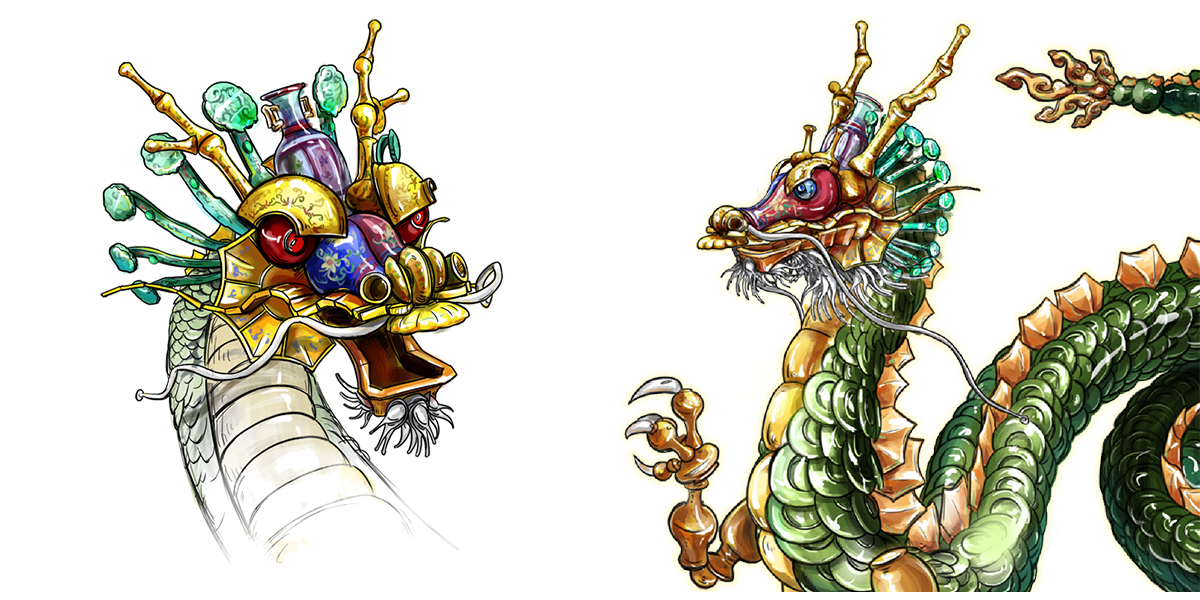 LONG的居所是龍珠閣,威嚴大氣的宮殿象征著他的皇家氣派。瓷龍不是很合群,總是很嚴肅。LONG執(zhí)掌御窯之石,是清代御窯瓷的代表,此石被藏在他的嘴里。