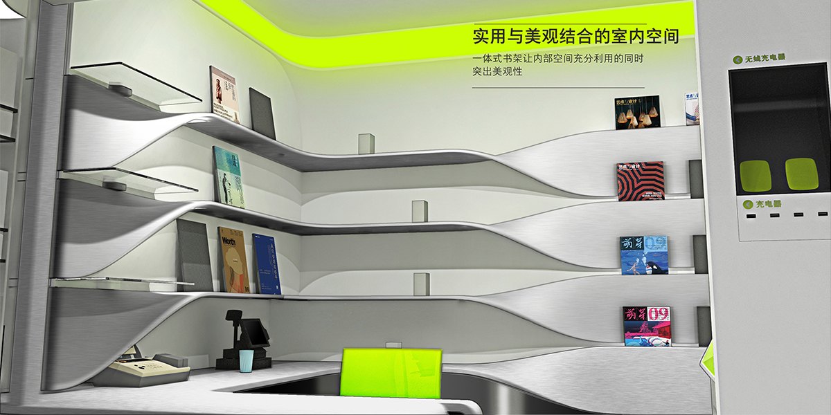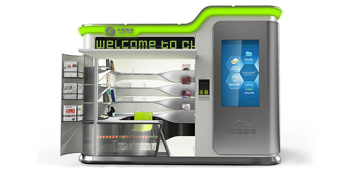 通過對中國郵政的文化背景研究,提出“以人為本”親民、便民的設計理念。其柔潤的圓角和流暢的曲線為產(chǎn)品增添親和力,簡潔的外觀與內(nèi)部流暢的曲線和燈光效果相呼應,凸顯產(chǎn)品的科技感同時又不顯得沉悶,多功能和模塊化設計更是人性化設計的主要體現(xiàn)。