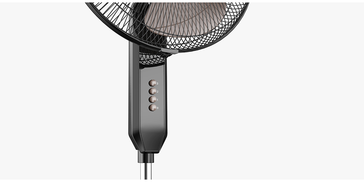 此落地扇以印度尼西亞為主要銷售市場,依據(jù)其市場的特性,明確了此落地扇以低成本、更顯薄、更顯立體感為設(shè)計方向。機身采用深色系實色注塑,不僅折射更豐富,亦增強產(chǎn)品立體感,符合印度尼西亞人的審美。按鍵功能羅列齊全,讓使用者得到更直觀、方便的使用體驗。