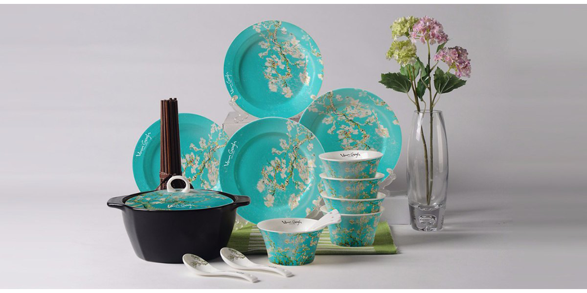 此方案中以梵高博物館正版授權(quán)的梵高八大作品為藍本,從梵高大量著名畫作中提取元素,多次調(diào)整所用圖案的色調(diào)、面積、排布等細節(jié)。最終形成的產(chǎn)品涵蓋枕墊、餐具等家居飾品,以及多種數(shù)碼周邊產(chǎn)品,范圍囊括生活衣食住行至創(chuàng)新科技。