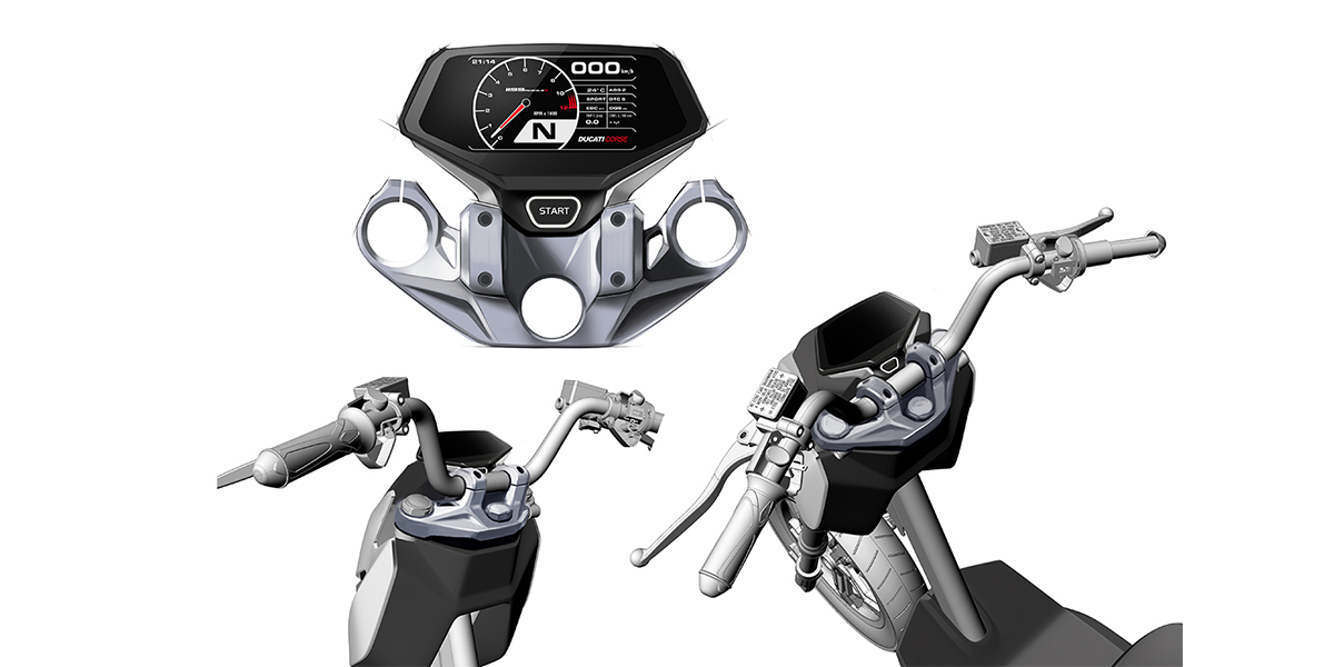 在概念設計方案的基礎之上,對其中的智酷極客方案進行了深入的分析和再設計。保留車身前臉的幾何形切割方案,對車座部位進行稍許修整,并保證面與面之間的每一個過渡都是有棱角的,從而使得車身更加鋒利并且充滿動感。在符合人機的基礎上將車尾稍稍凸起,呈現(xiàn)出快速和運動的節(jié)奏,從而使得這款電動車與 80 和 90 后目標人群的需求相符合。
