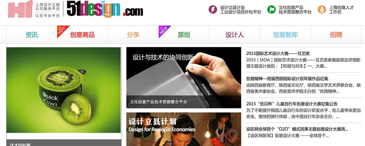 51design,創(chuàng)意與設(shè)計的門戶網(wǎng)站之一。它是設(shè)計師的思想源泉、創(chuàng)意智庫,是原創(chuàng)作品和設(shè)計師交流分析的平臺;它致力于成為創(chuàng)意領(lǐng)域的行業(yè)門戶網(wǎng)站和中文創(chuàng)意與設(shè)計門戶網(wǎng)站。從設(shè)計立縣,創(chuàng)意資本中心,到用戶調(diào)研中心、品牌設(shè)計研究中心和產(chǎn)品中試平臺、產(chǎn)品展示旗艦店,51design不斷開發(fā)更加實用的專業(yè)功能模塊,為用戶提供高質(zhì)量的服務(wù),并依托強有力的資源,為創(chuàng)意人才打造一個更高效、更便捷的產(chǎn)業(yè)服務(wù)家園。