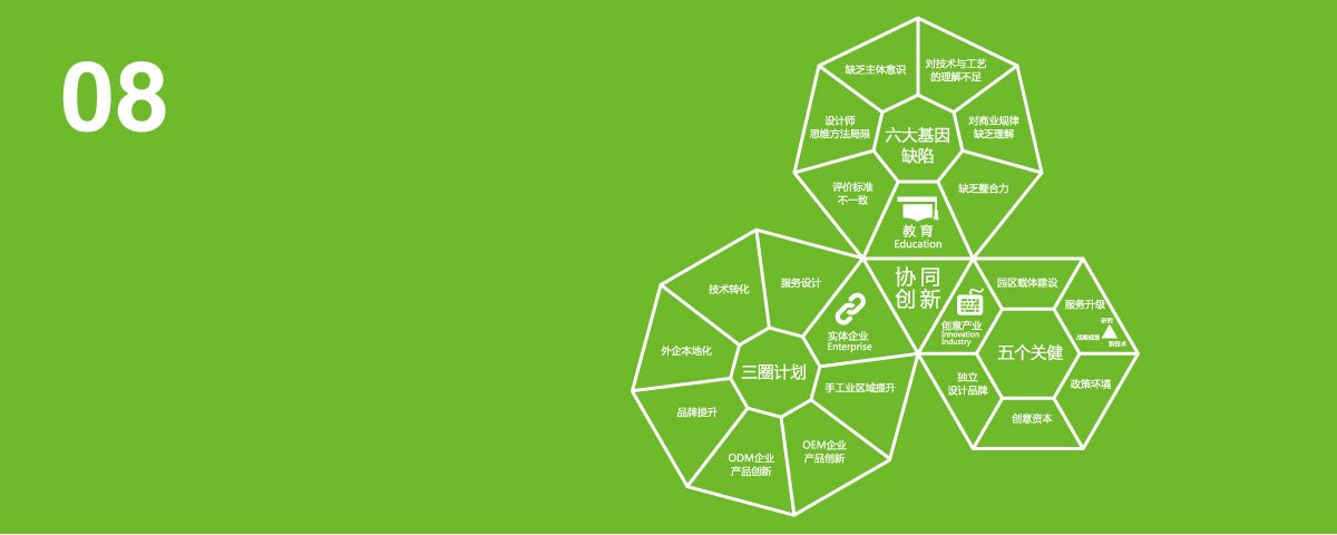 創(chuàng)意產(chǎn)業(yè)要成功,與五個(gè)關(guān)鍵要素相關(guān):需要優(yōu)良的政策環(huán)境和園區(qū)載體建設(shè);需要將傳統(tǒng)的設(shè)計(jì)服務(wù)升級(jí);將創(chuàng)意資本化,或創(chuàng)立獨(dú)立設(shè)計(jì)品牌。