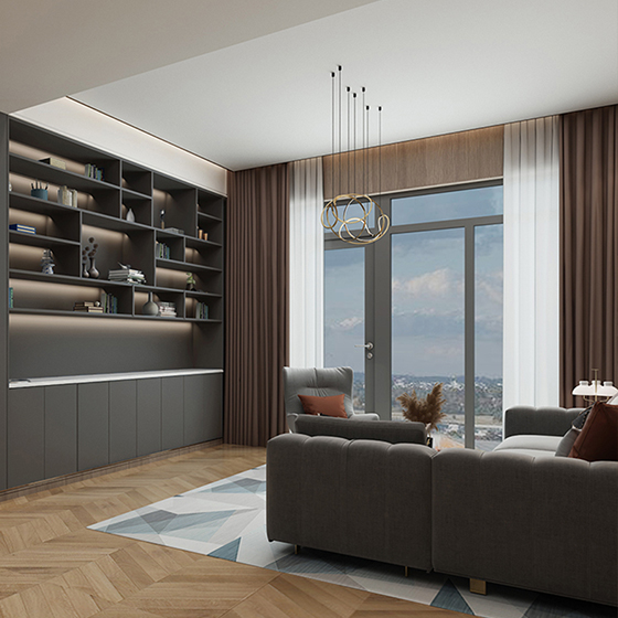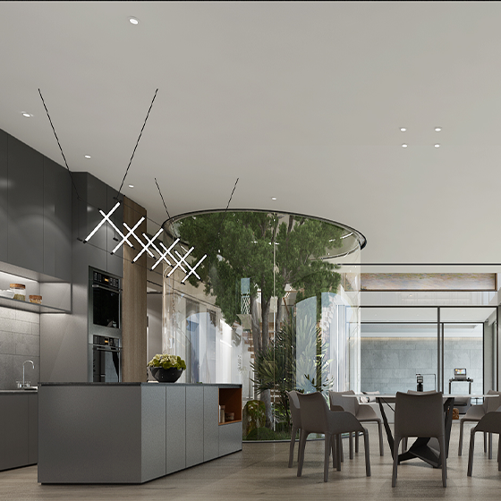 設(shè)計師基于業(yè)主的生活習(xí)慣和需求,對餐廚空間進行巧妙的規(guī)劃,空間之間的開放互聯(lián)不僅遵循著豪宅應(yīng)有的比例尺度,融合審美情趣,也彰顯了主人的品味與格調(diào)。高級灰調(diào),抹在每個空間細(xì)節(jié),體現(xiàn)在電視主墻、地面磁磚的質(zhì)樸,運用藝術(shù)感的設(shè)計手法,讓各個空間相互映照滲透彼…