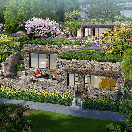 運用和諧自然設計理念,大量采用石材作為建筑主材,設計以山水自然為主線,景觀繞水而生,房屋組合布局,水的柔美與石的陽剛形成強烈反差,現(xiàn)代建筑與自然山水有機結合,演繹出山水一體的絕美意象。