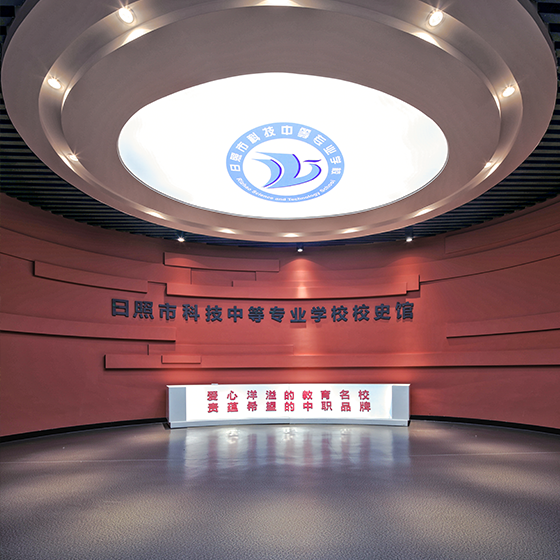 在深入了解學校的辦學宗旨、校風校訓和校園文化后,校史館的設計概打破通俗的陳列室的布局,通過亮麗的主題色強化重點,加強視覺體驗感,并通過燈光和多媒體技術讓展示效果更立體生動打造出具有前瞻性、藝術性、科技性和富有層次感的布展風格。