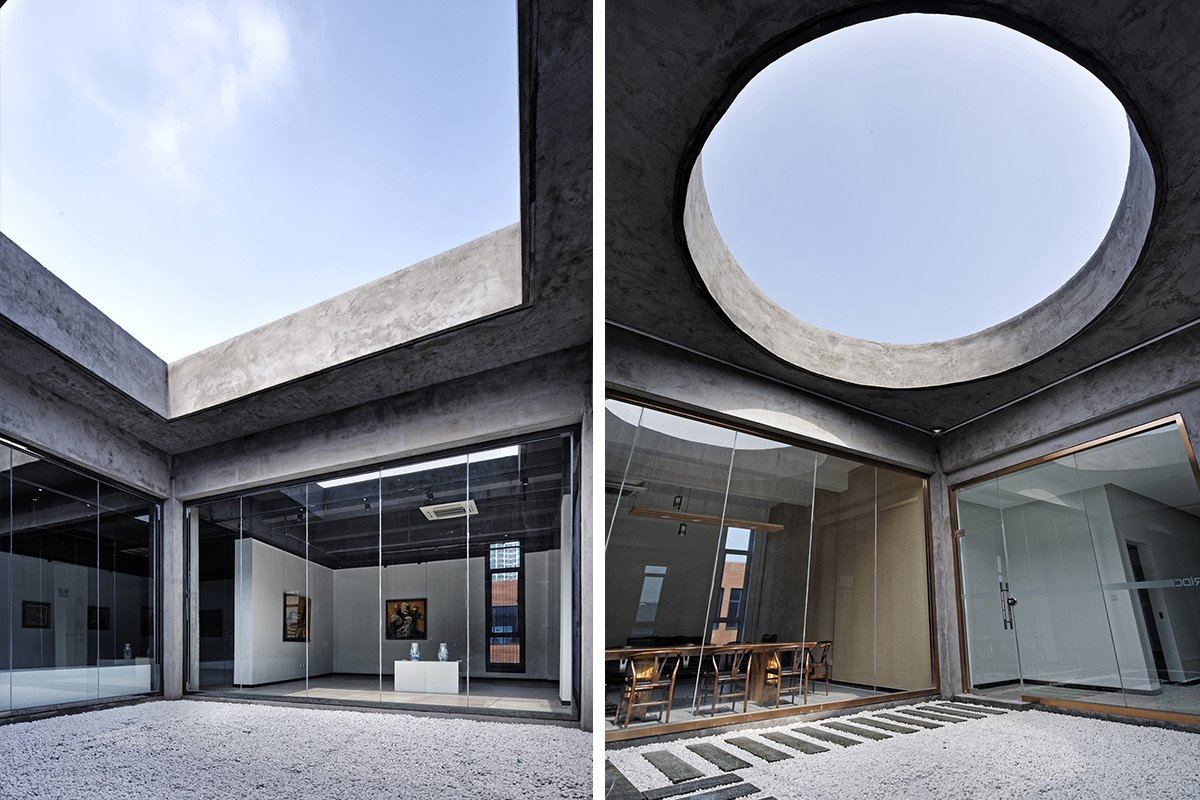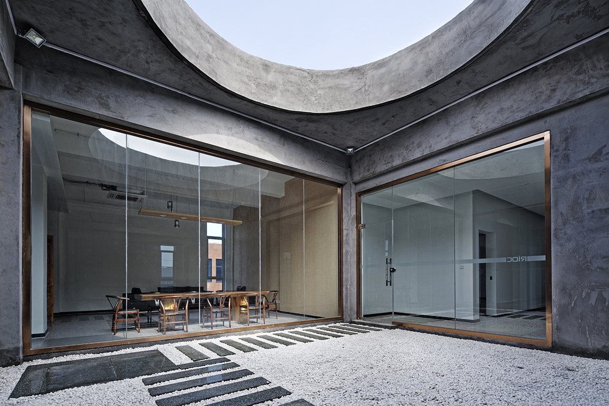 在空間設(shè)計(jì)語言中采用“天圓地方”的形式語言,在有限的空間中創(chuàng)造別有洞天的生動(dòng)畫面。
